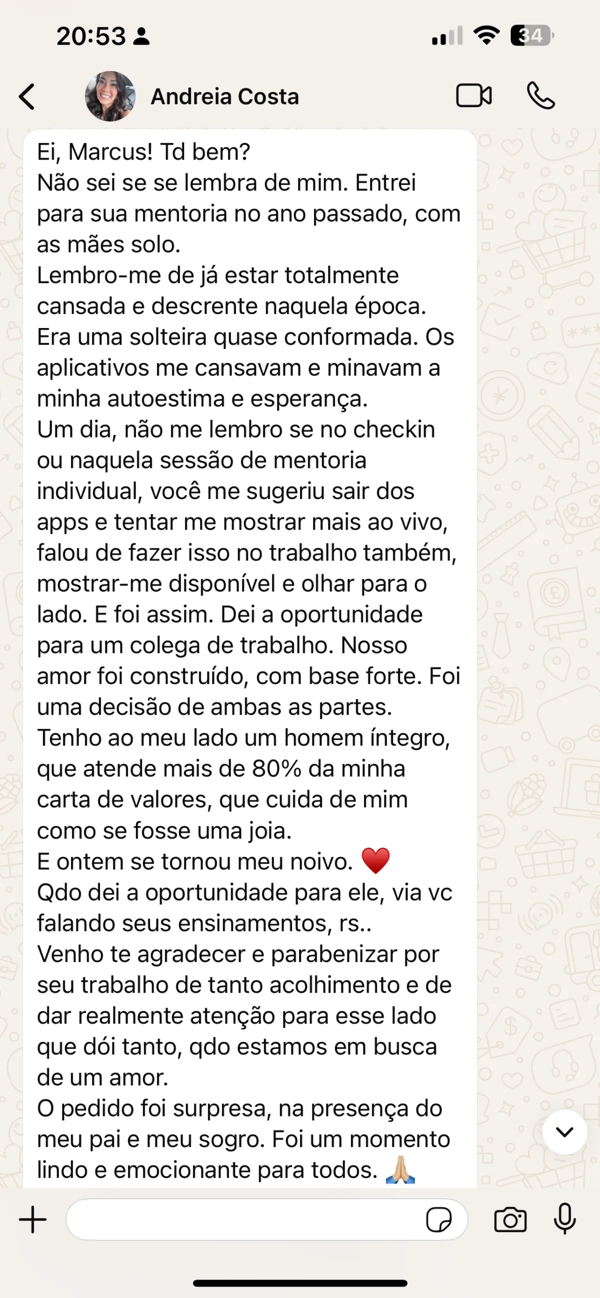 Uma experiência guiada e simples de aplicar, que já ajudou mais de 2.500 mulheres a conquistar clareza emocional e a escolher com consciência no amor.